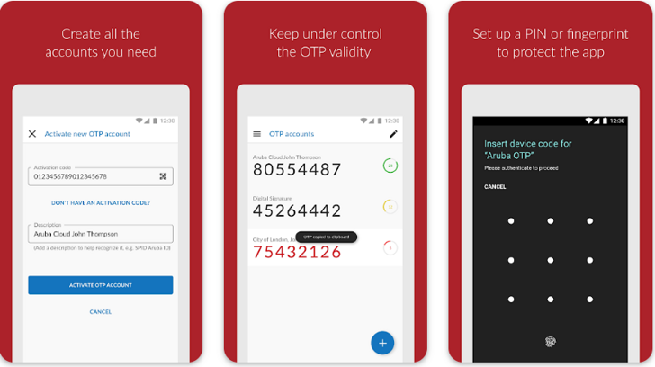 Below are some of the notable features of the Aruba OTP app: