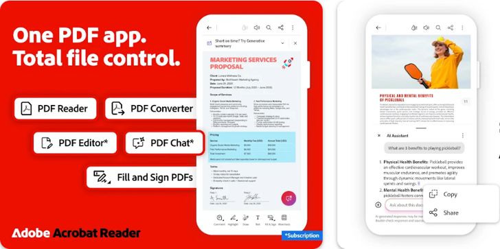 Adobe Reader is a powerful application designed to facilitate seamless access to PDF documents, ensuring users can view, annotate, and share files effortlessly. With its intuitive interface, users can navigate through extensive documents with ease, while advanced annotation tools allow for effective note-taking and collaboration. The app supports various formats, enhancing compatibility across devices and platforms. Additionally, built-in security features ensure document integrity, making Adobe Reader an essential tool for both professionals and casual users seeking efficiency and convenience in document management.
