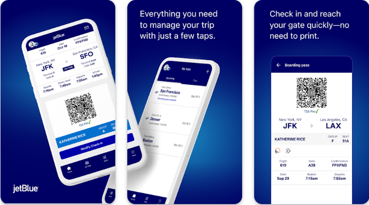 - In-App Check-In and Boarding Pass Storage: The JetBlue app facilitates a hassle-free check-in process, allowing users to check in up to 24 hours before their flight directly within the app. It supports the digital boarding pass feature, enabling users to store and access their boarding passes securely within the app, which serves to streamline airport navigation and reduce reliance on physical documents.
