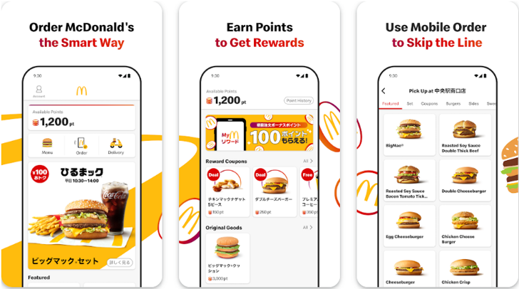 Below are some of the notable features of the McDonald's Japan app: