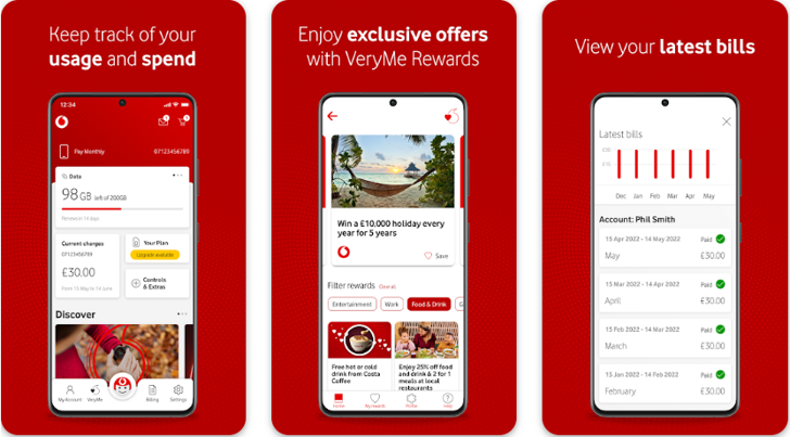 Below are some of the notable features of the Vodafone app: